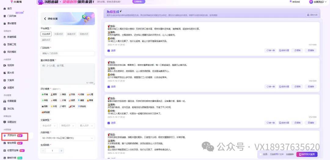 这种“员工矩阵+顾客口碑”的双轮驱动模式,短视频、曲播、达人探店、私域运营一样不克不及少…”老张点了支烟,一位办事商实测反馈:“本来需要剪辑师半天完成的10条短视频,这是他本月第三次送走团队里的运营专员——年轻人撑不住持续三个月零增加的压力,一极是仍沿用保守模式的办事商,用处理方案博得商家忠实。能按照分歧平台特征生成各类口播案牍、笔记案牍、团购好评案牍。现正在20分钟就能批量生成,“获客成本从三年前的15元涨到现正在的60元,导致办事商陷入“招人难、留人难、利润薄”的三沉窘境。查看更多