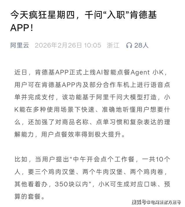 用户打开肯德基APP,该帮手基于阿里千问大模子打制,购物、订餐、出行、文娱......至此,